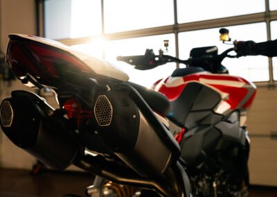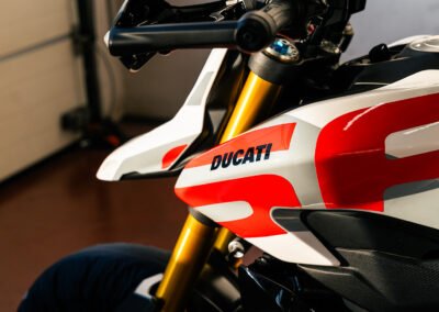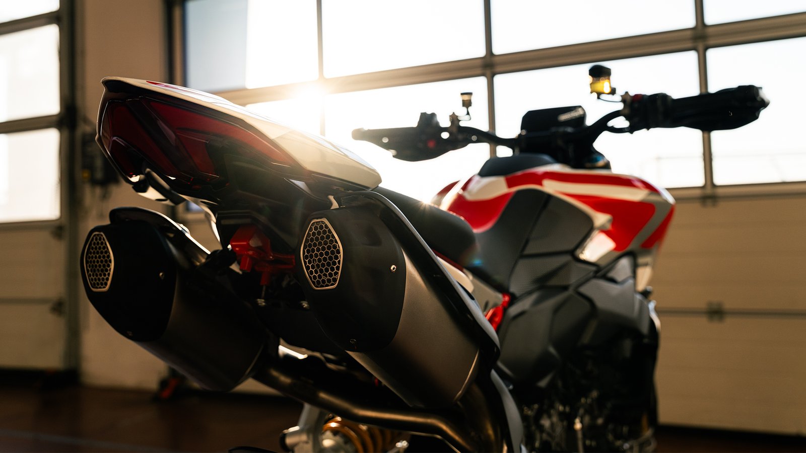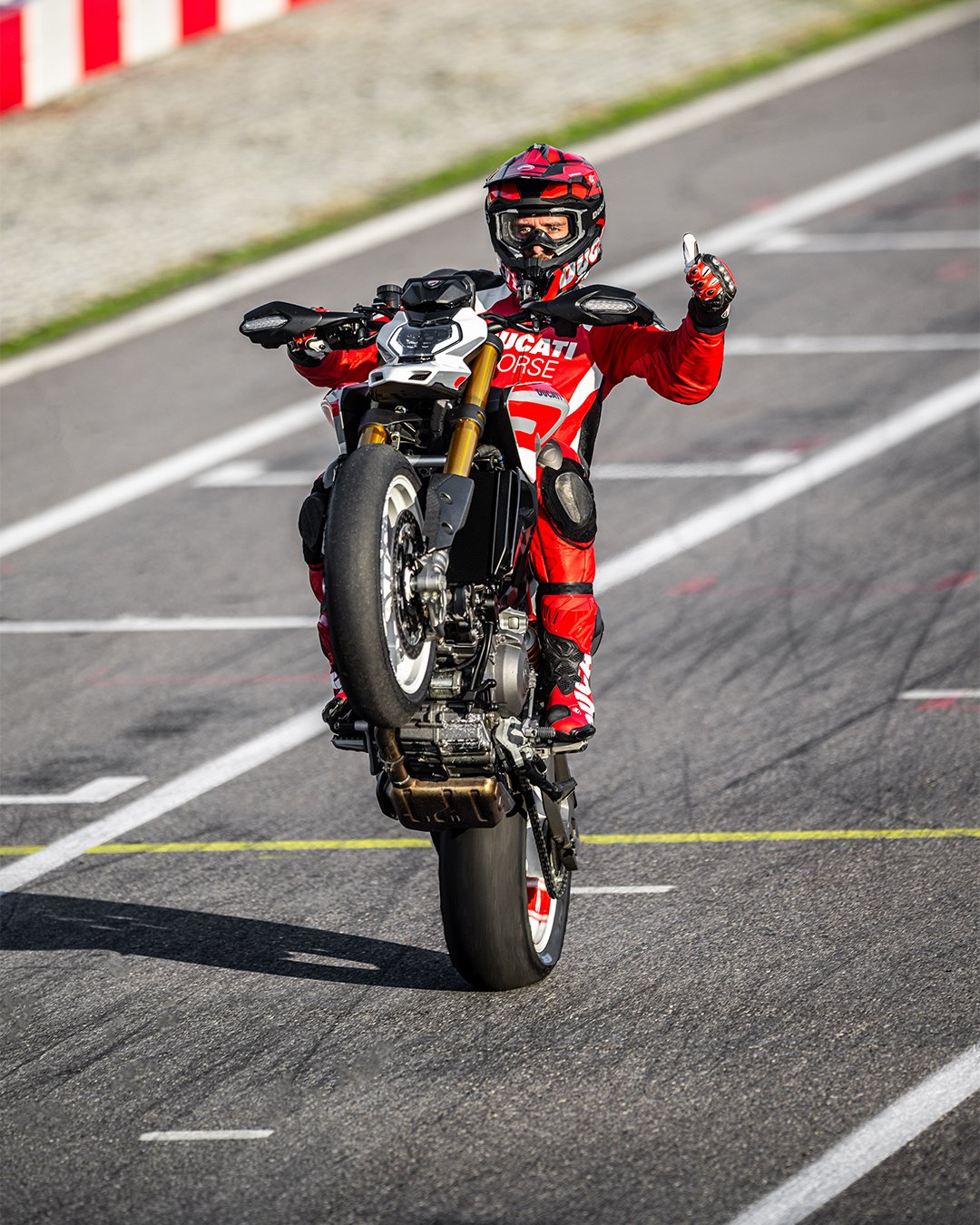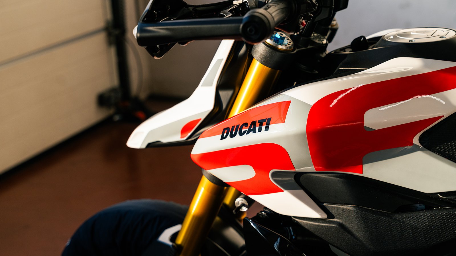 Lighter, sharper, more sophisticated, and more powerful than ever before: the new Hypermotard redefines the concept of adrenaline on two wheels, 20 years on from the first prototype. With its V2 twin, this bike embodies the essence of extreme riding, combining benchmark performance with an aggressive design and cutting-edge technology. The DNA of the new Hypermotard is rooted in the very first prototype presented at EICMA 2005 and named “Best in Show”. Distinctive elements are inherited from that icon to ensure character, not least the front headlight with unmistakable “beak”, the tank cover with double wing, the dual exhaust under the tail that leaves the trellis frame exposed, and the floating rear light. Clean and aggressive lines that continue to excite and enthral today.
