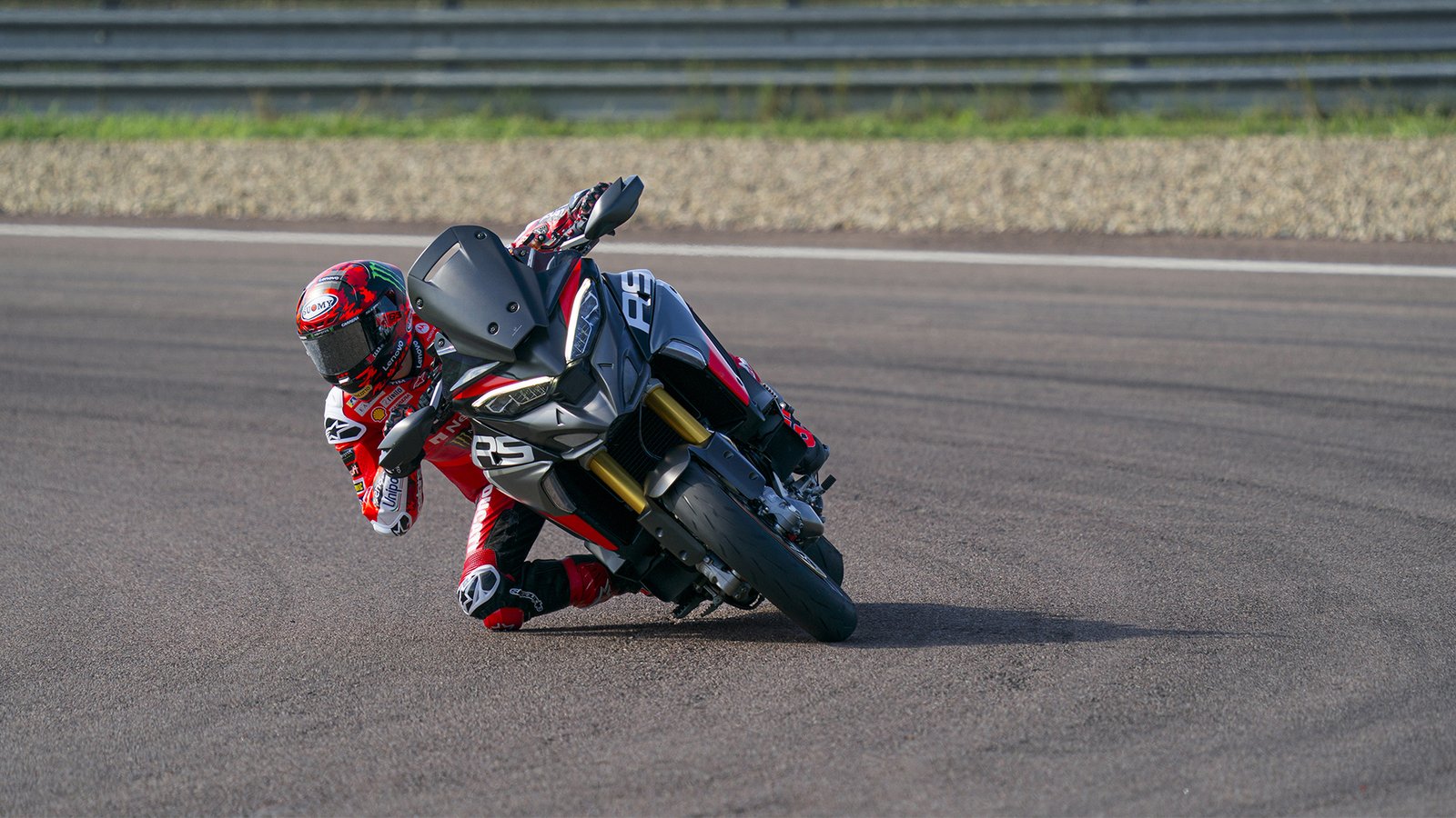 Front brake: 2 x Ø 330 mm semi-floating discs, radially mounted Brembo Stylema monobloc 4-piston 2-pad callipers, radial master cylinder