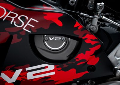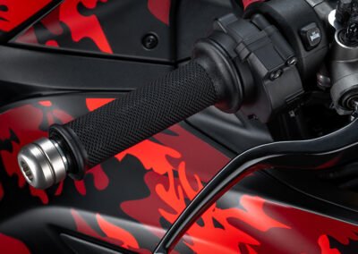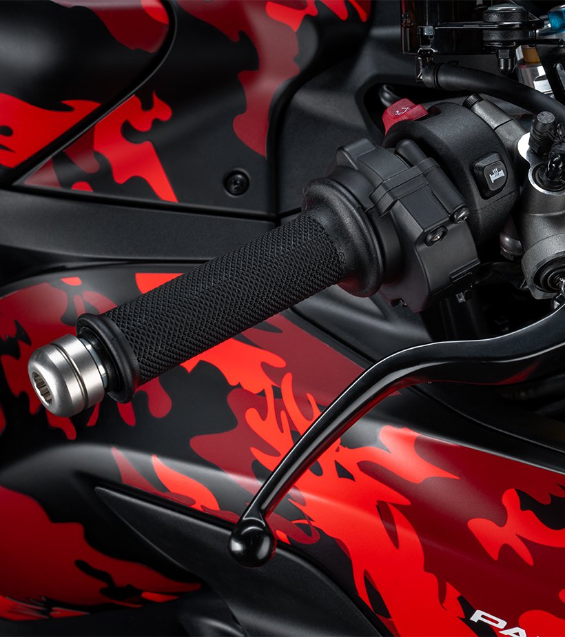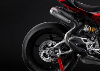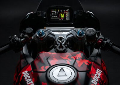 This special edition of the Panigale V2 was developed based on its role as a training bike for Marc Márquez. The dedicated equipment included in this version forms the ideal setup for hitting the track: racing-position handlebars, forged wheels, and more racing-inspired details to make the Panigale V2 even more effective on the curbs. The one-of-a-kind livery is inspired by the 2024 Barcelona post-season test, the first time on track “Todo Rojo”.
