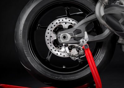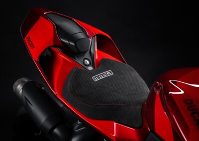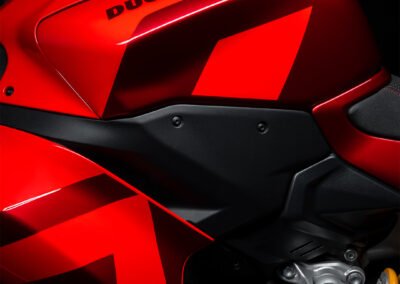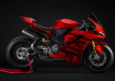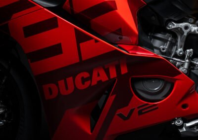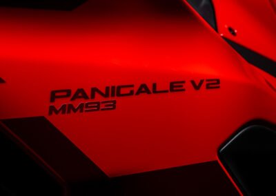 This special edition of the Panigale V2 was developed based on its role as a training bike for Marc Márquez. The dedicated equipment included in this version forms the ideal setup for hitting the track: racing-position handlebars, forged wheels, and more racing-inspired details to make the Panigale V2 even more effective on the curbs. The one-of-a-kind livery is inspired by the 2024 Barcelona post-season test, the first time on track “Todo Rojo”.