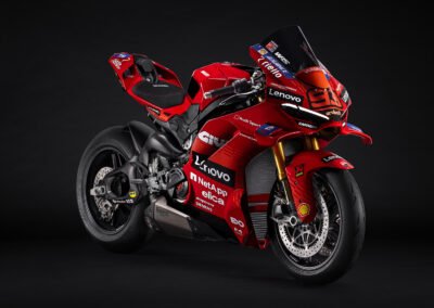 A limited series of 293 units, with exclusive livery and racing components to experience the thrills of true champions. A tribute to the extraordinary achievement of Marc Márquez, who won his seventh world title with his Desmosedici GP25. Replica livery, original autograph on the tank cover, carbon and aluminum racing components, Akrapovič silencer, dry clutch, and competition braking system. Every detail is designed to offer the thrills of a true champion. A collector’s item that comes with an exclusive kit and a special personalized wooden crate for delivery.