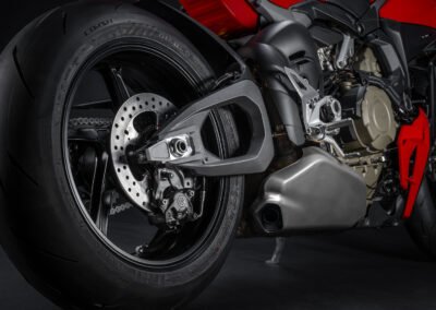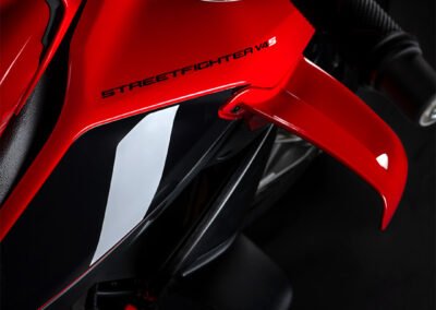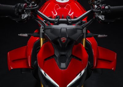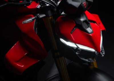 The Ducati Streetfighter V4 is created to amplify the emotions of the rider by making him or her feel protagonist in every ride on the road. An unrivalled naked bike, modern and technological, with a powerful and exciting design, which does nothing to hide its performance, and which has met with great success from the general public and critics. The bike conveys sportiness right from the first glance, with the single-seat configuration due to the presence, in the standard equipment, of the passenger seat cover that can be replaced with the saddle and footpegs supplied as is the case on the new Panigale V4. The tank, evolved in shape and with greater capacity (16.5 kg), is embraced by new side covers that support the wings. So many engineering and technological aspects bring the Ducati Streetfighter V4 to life. A balances of distinctive lines, brutal power, and cutting-edge technology and components come together in the Fight Formula. The latest generation electronic package of the Ducati Streetfighter V4, which incorporates the updates introduced on the Panigale V4 family, is based on the use of a 6-axis inertial platform (6D IMU – Inertial Measurement Unit) capable of instantly detecting roll angle, yaw and pitch of the bike in space.
